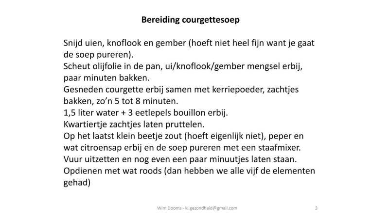 Hieronder staat een recept van een soep die ik heb omgezet naar de 5 elementen, of wel de Chinese voedingsleer.